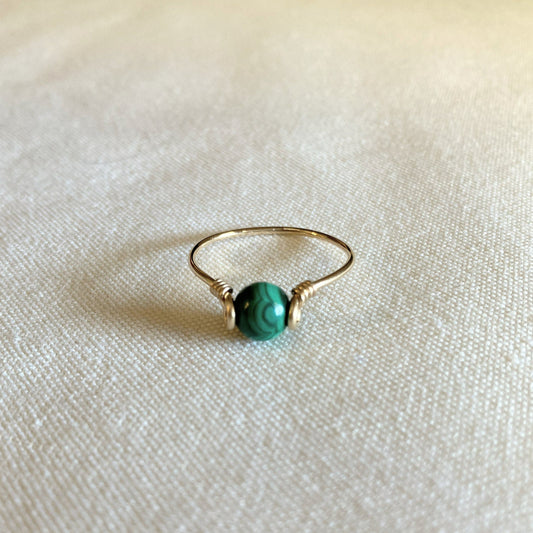 Jade, Malachite, Herkimer 14k Gold Filled Wire Rings
