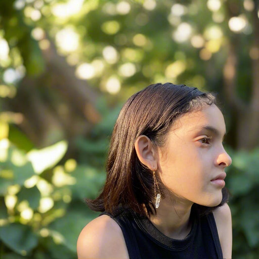 14k Gold Filled Paper Clip Clear Quartz Earrings