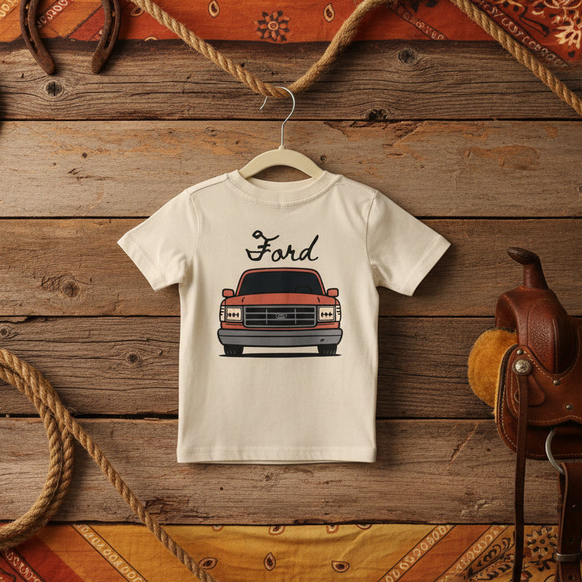 There's nothing quite like the charm of a classic truck. Inspired by iconic Ford designs, this tee celebrates that timeless appeal for kids and adults alike. Featuring a playful, cartoonish graphic in neutral tones, it's crafted from soft, breathable cotton for all day comfort and easy care.